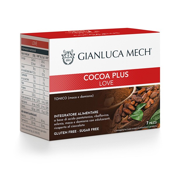 Integratore alimentare a base di cioccolato con maca e damiana ad azione tonica.