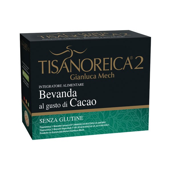 Proteine del latte (emulsionante: lecitina di girasole), cacao magro in polvere (20%), Attivatore Tisanoreica® (acacia fibra (Acacia seyal Delile) gomma, papaya e.s. 1:4 (Carica papaya L.) frutto, ananas succo liofilizzato (Ananas comosus L. Merr.) frutto tit. in bromelina 250 GDU, malva e.s. 1:4 (Malva sylvestris L.) fiore, anice stellato e.s. 1:4 (Illicium verum Hook.f.) frutto, finocchio e.s. 1:4 (Foeniculum vulgare Mill.) frutto, carciofo e.s. (Cynara scolymus L.) foglia tit. 2,5% acido clorogenico, tarassaco e.s. (Taraxacum officinale Weber) foglia tit. 2% inulina, lespedeza e.s. 1:4 (Lespedeza capitata Mich.) parti aeree, griffonia e.s. (Griffonia simplicifolia (DC.) Baill.) seme tit. 20% 5-HTP, frangula e.s. 1:4 (Rhamnus frangula L.) corteccia), sale, aromi (contiene: soia), cicoria solubile radice, edulcorante: aspartame, antiagglomerante: carbonato di magnesio, succo di melone frutto (Cucumis melo L.) liofilizzato incapsulato (maltodestrine, succo di melone liofilizzato, agente di rivestimento: gomma shellac). Contiene una fonte di fenilalanina.